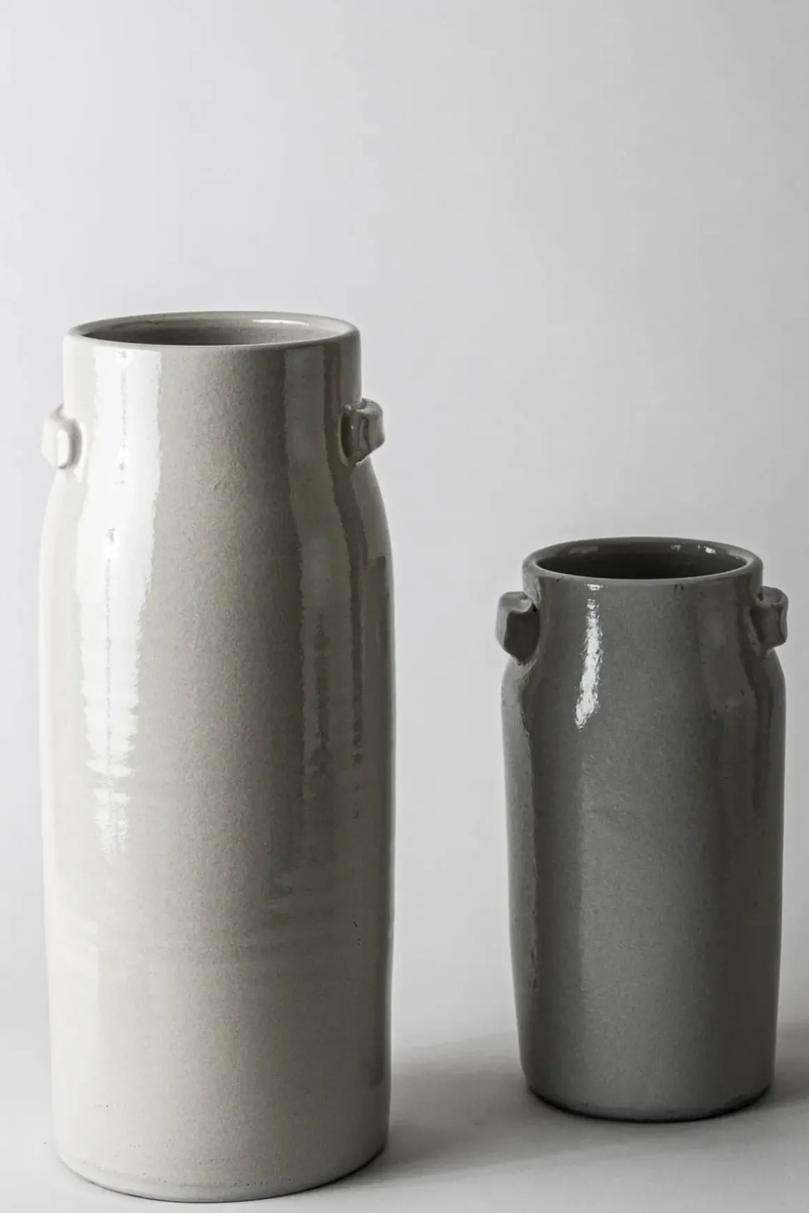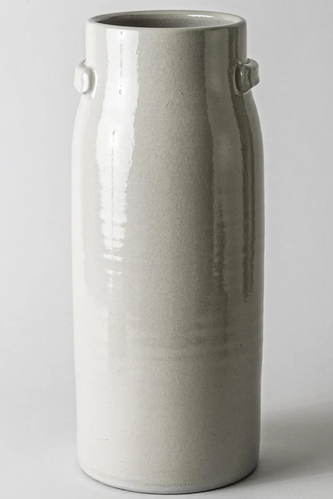 Elegant og høy vase i glasert leirgods fra Serax, utført i en dus gråfarge. Vasen har avrundede og myke kanter samt små hanker som en liten detalj.