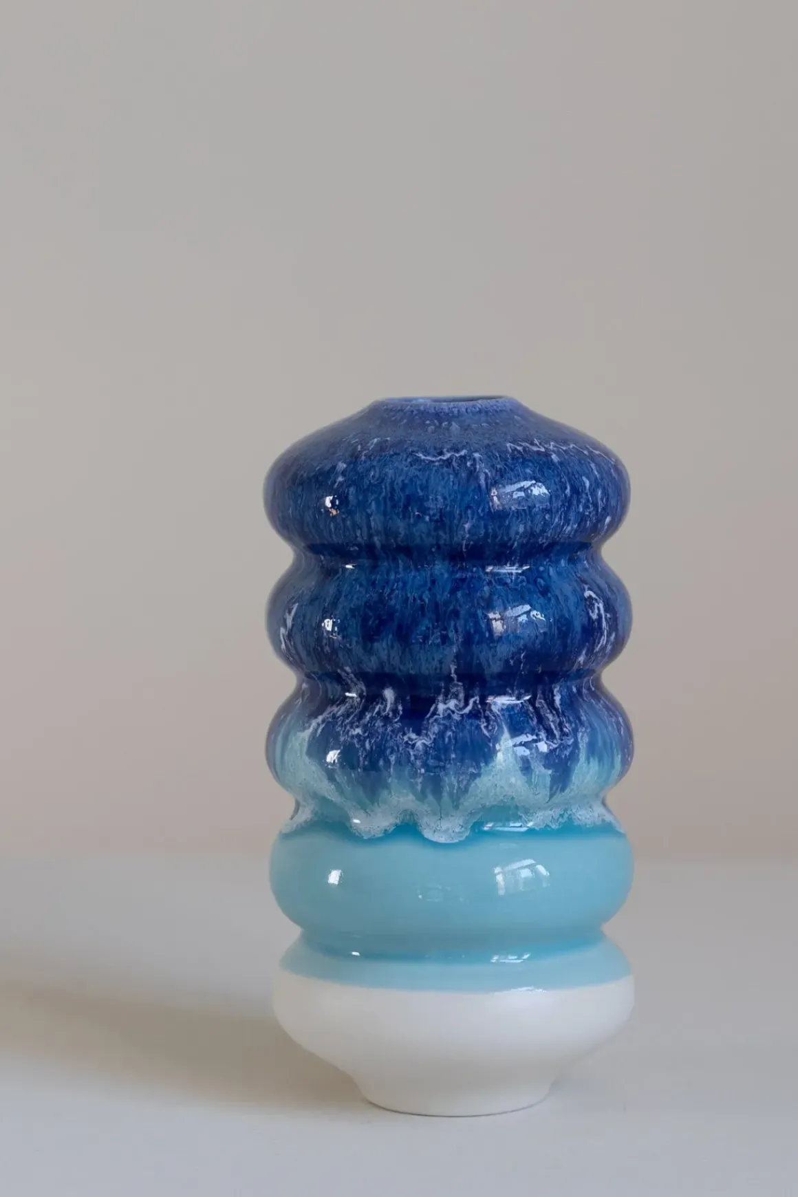 Kiku er en håndlaget keramikkvase fra Studio Arhoj, der hver vase er unik med subtile variasjoner i glasuren. Den bølgete, organiske formen gir et skulpturelt uttrykk, og den passer godt til en liten bukett, en enkelt blomst eller som et dekorativt objekt i seg selv.