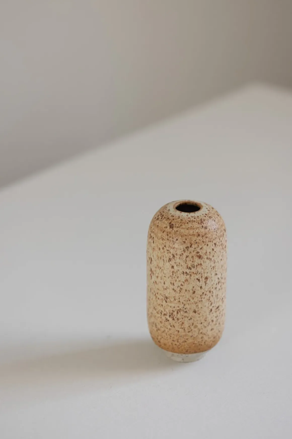 Håndlaget Mini Yuki Vase av glasert keramikk fra danske Studio Arhoj. Vasen er one-of-a-kind, slik som alle produkter fra Studio Arhoj. Perfekt til mindre buketter, men også svært dekorativ i seg selv alene på et bord eller kommode. Gi hjemmet ditt personlighet med flere vaser i ulike former og farger.