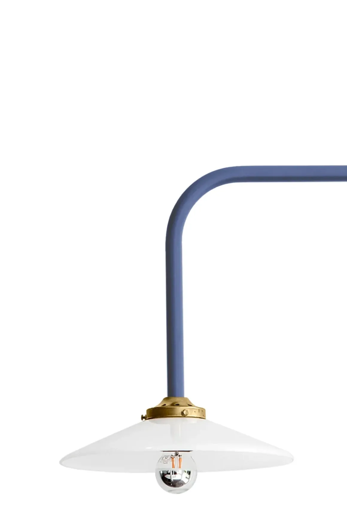 Hanging Lamp vegglampe N°5, designet av Muller Van Severen for Valerie Objects. Hanging Lamp-serien har et naivt og lekent formspråk i sterke farger og er laget av pulverlakkert stål eller messing med en enkel lampeskjerm i hvitt glass. Lampene er sofistikerte med en industriell look og et ukomplisert og ærlig design. La den henge over spisebordet, sofaen, sengen eller i gangen, og la fargene tilføre liv og lekenhet til innredningen. Siden Hanging Lamp kommer i flere ulike varianter og størrelser, kan du finne den perfekte match til ditt hjem.