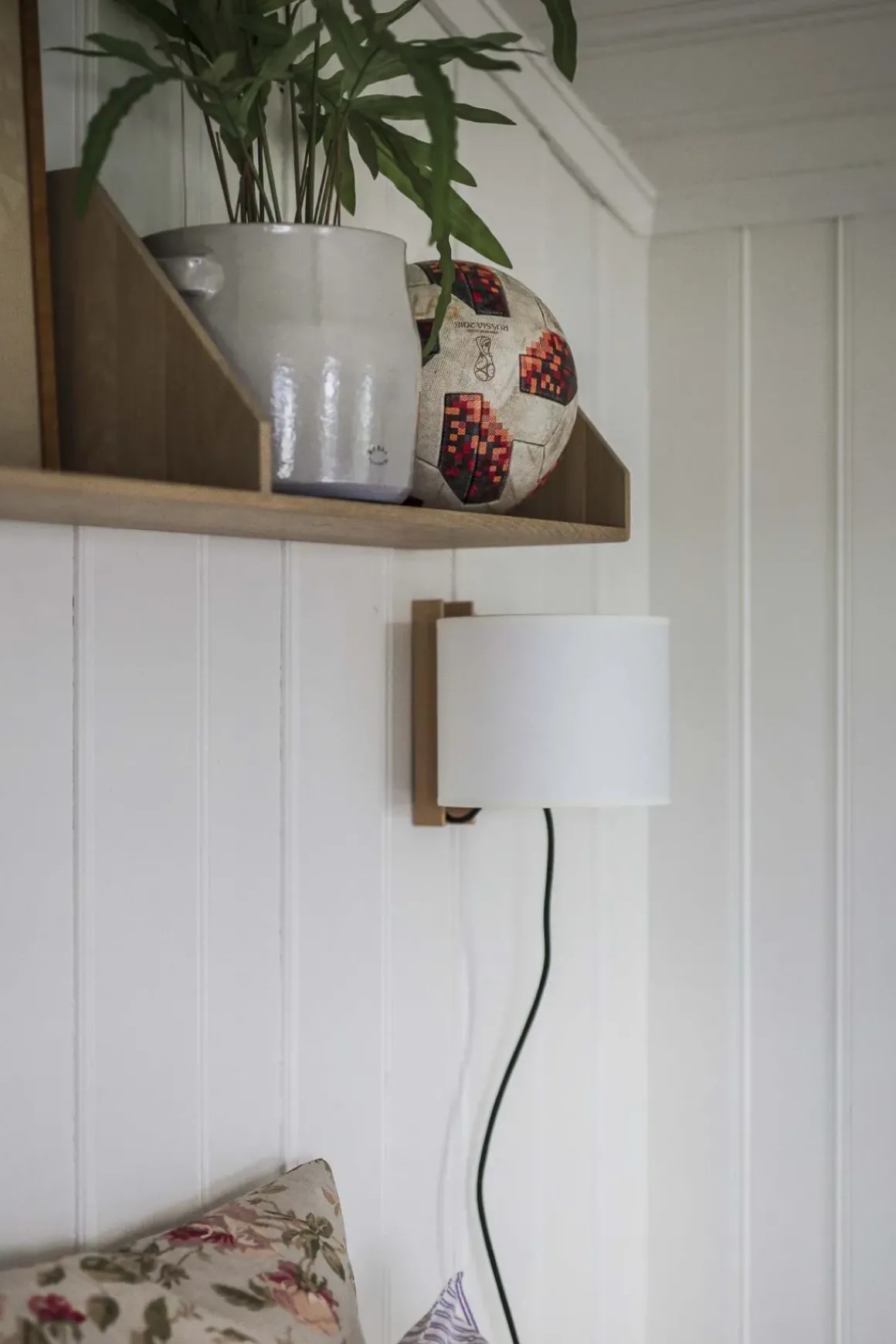 Vegglampen er en kombinasjon av fantastisk design og funksjonalitet, som aldri vil gå av moten. TMM er enkel og vakker med struktur i bøk og lampekjerm i pergament som gjør at lampen avgir et varmt, behagelig lys. Lyset skrus av og på ved å dra lett i ledningen.