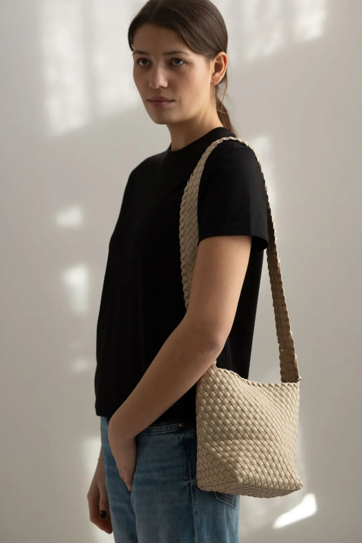 Stilren og praktisk crossbody-veske i mykt håndvevd neopren. Laguna har en skulderrem som er designet litt kortere; da den vil gradvis strekke seg til perfekt lengde ved bruk. Magnetlukking og et romslig hovedrom med innerlomme – perfekt for hverdagsbruk.