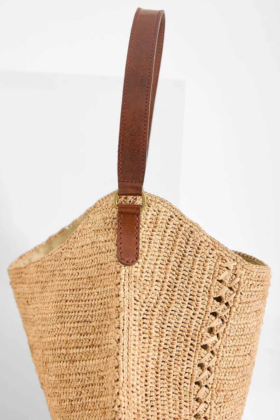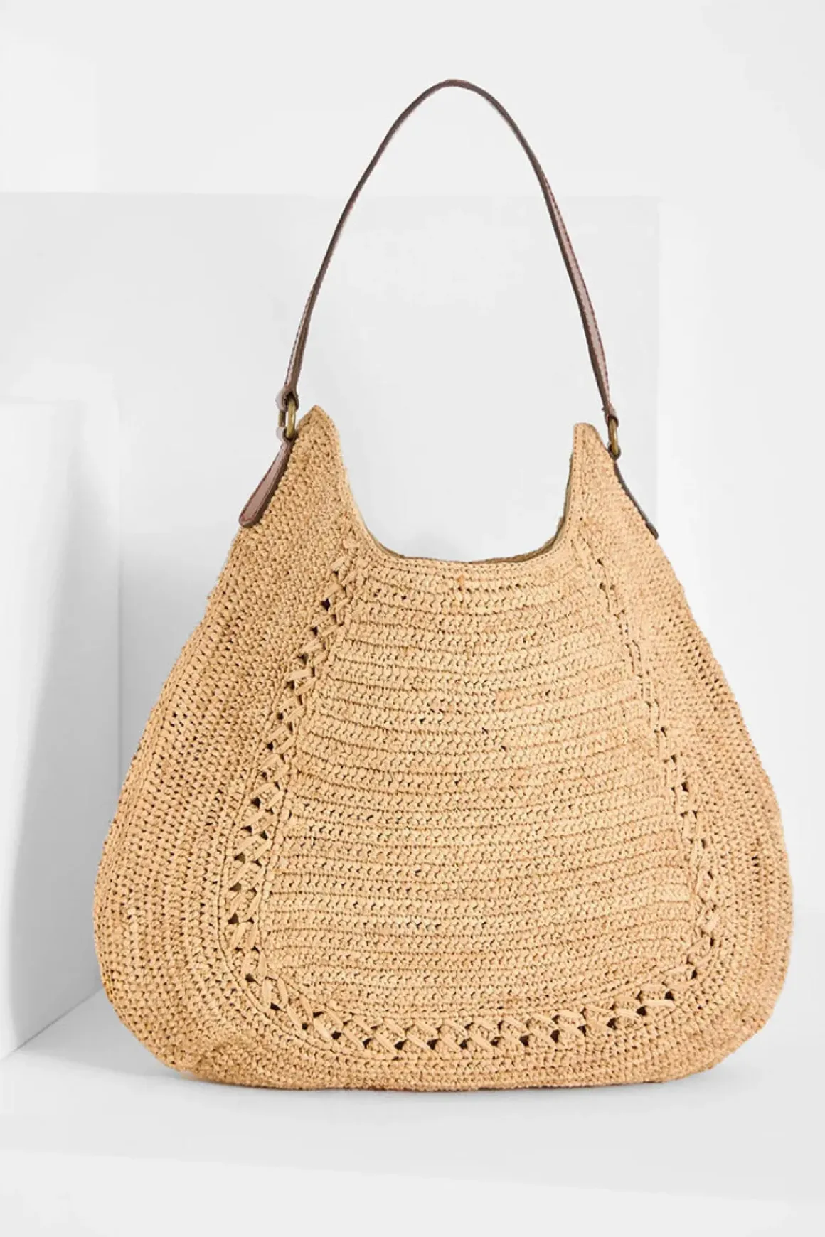 Meva fra Ibeliv er en håndlaget skulderveske i naturlig raffia, med myk hobo-form og avslappet bohemsk stil. Den er heklet for hånd på Madagaskar og kombinerer tradisjonelt håndverk med en tidløs, minimalistisk silhuett. Den mellomstore størrelsen og fleksible formen gjør at vesken sitter behagelig under armen – perfekt både til jobb og helgeturer. Et vegetabilsk garvet skinnhåndtak gir god komfort og skaper en fin kontrast til den myke raffiaen. Innsiden er fôret med økologisk bomull, har en praktisk innerlomme og lukkes enkelt med magnet. Det subtile mønsterspillet i heklingen gir Meva et rent uttrykk og gjør den like aktuell sesong etter sesong.